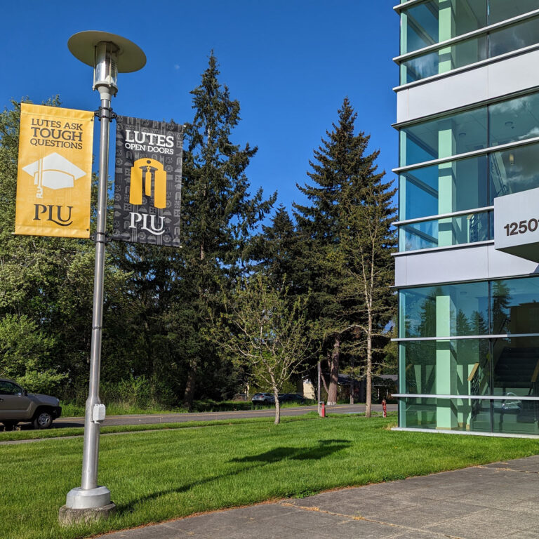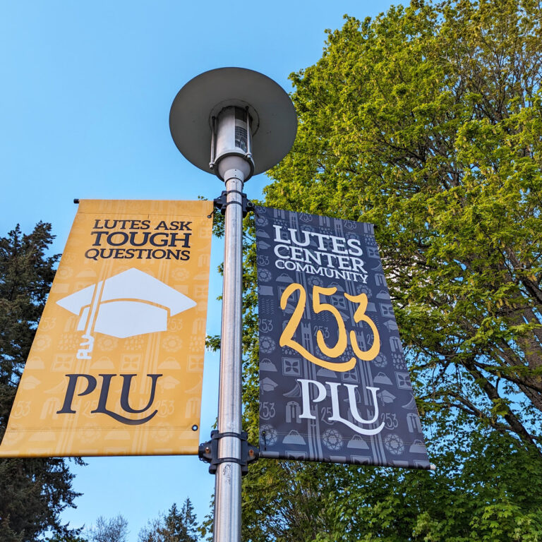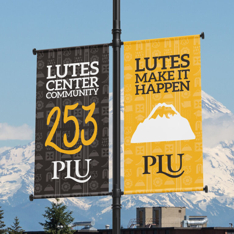 PLU was also looking to have a long-lasting design. The banners don’t get replaced for 4-6 years (when the wear and tear on the canvas starts to show.) The design needed to be evergreen, and not tied to a date, anniversary, or particular trendy design style.